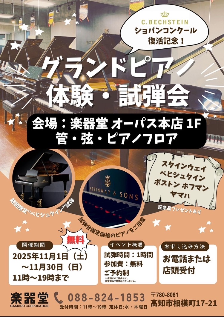 ※1F管弦ピアノフロアの定休日は木曜日、第1・第3水曜日です。