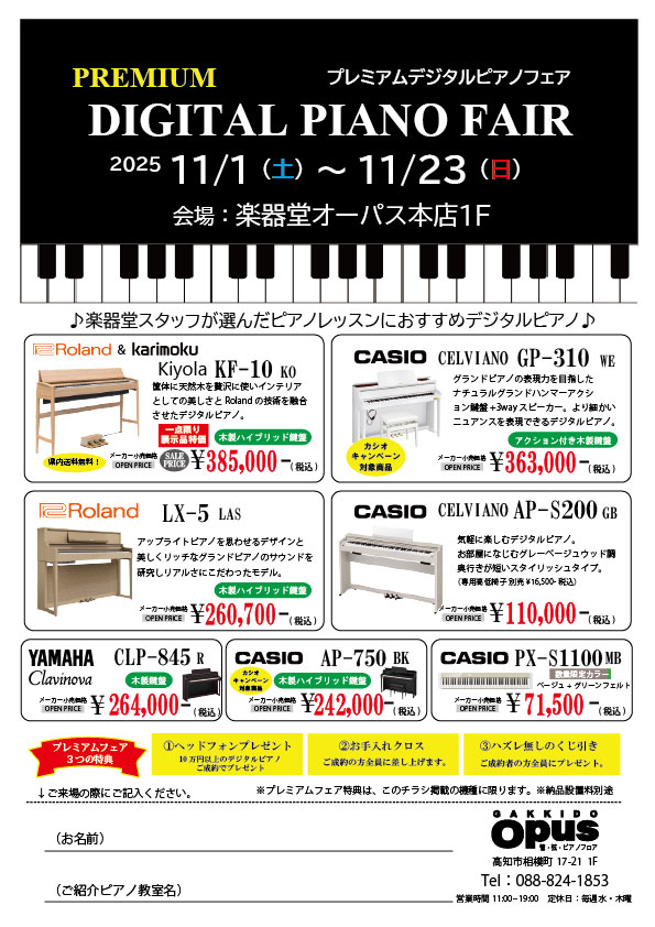 いつもオーパス本店1F管弦ピアノフロアをご利用いただきありがとうございます。