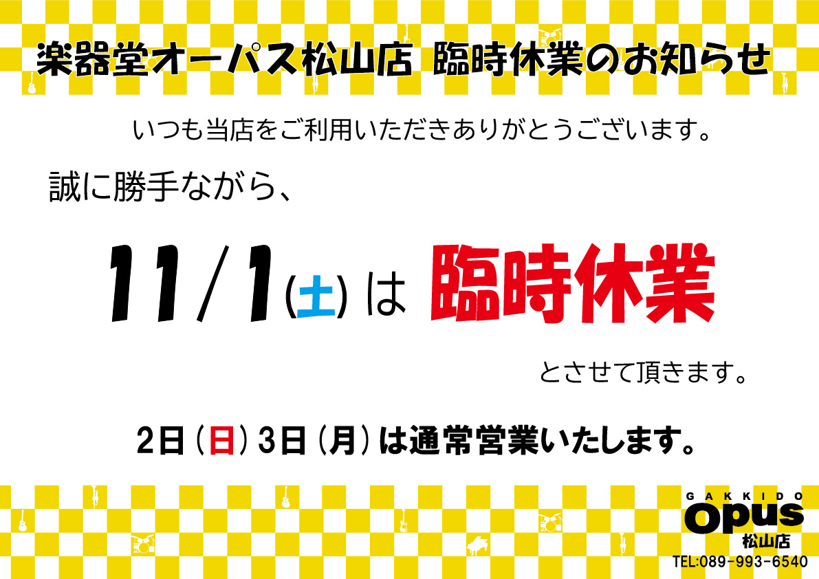 楽器堂オーパスの各店舗及びオーパスクラブ高松は、2022年 10月 1日をもちまして、