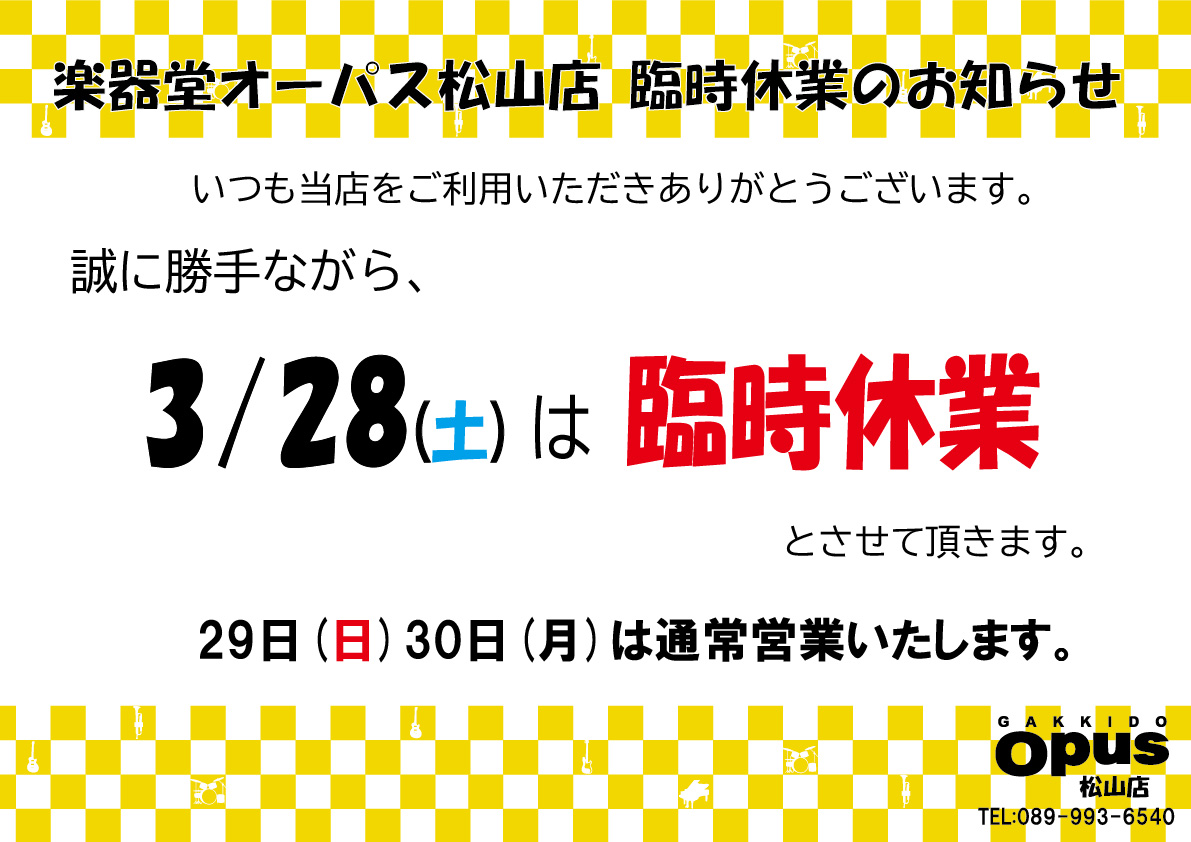 臨時休業のお知らせ(2026年3月28日)-OPUS松山店