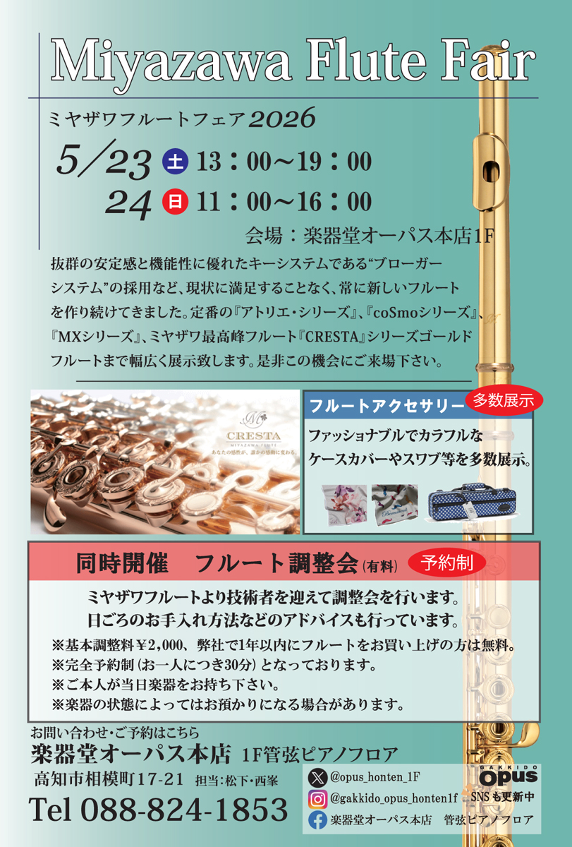 ミヤザワフルートフェア(5月23日〜24日)-OPUS本店1F管弦ピアノフロア