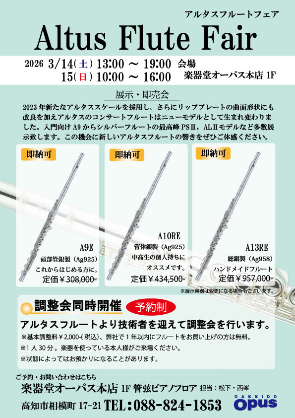 アルタスフルートフェア(3月14日〜3月15日)-OPUS本店1F管弦ピアノフロア