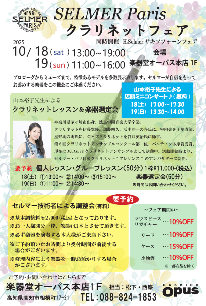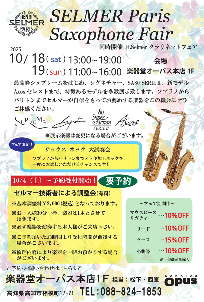 セルマーサックス・クラリネットフェア(10月18日〜10月19日)-OPUS本店1F管弦ピアノフロア